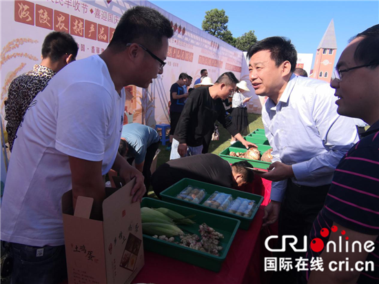 泰州市海陵区委副书记张兆洋(右二)询问农产品的产销情况 摄影 陈星
