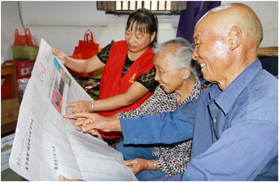 志愿者为老人读报