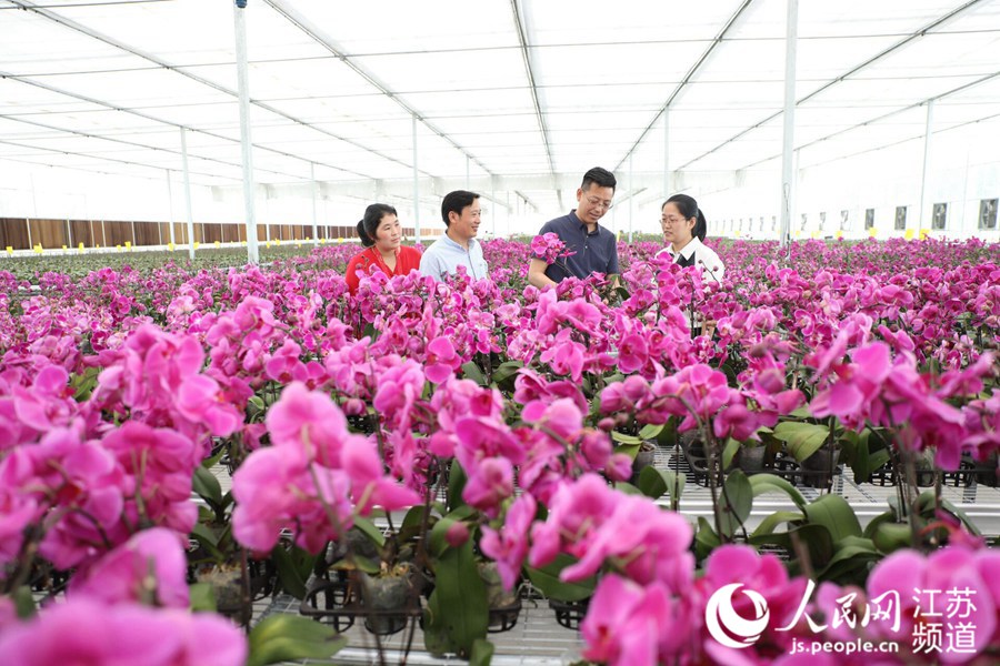 6月2日,江苏宿迁市沭阳县陇集镇李徐村蝴蝶兰基地的温室大棚里,数万株盛开的蝴蝶兰姹紫嫣红,争奇斗艳,散发阵阵清香。据了解,李徐村是“十三五”省定经济薄弱村,该村采取“公司+农户”“公司+电商”模式兴建蝴蝶兰基地,集品种研发、种苗繁育、栽培种植、线上线下销售为一体,现已培育蝴蝶兰1.1万平方米,近20个品种,首批培育的10万株蝴蝶兰相继开花。(人民网江苏频道 作者 丁华明 黄启源)