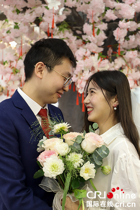 国际在线江苏报道(陈小雨):2022年2月22日是农历正月二十二,也是星期二,因为“2”谐音“爱”,这一天也被网友称为“最有爱的一天”。一大早,南京市建邺区民政局婚姻登记处就排起了长队,不少新人早早就预约了当天结婚登记,在“最有爱的一天”和最有爱的人一起办个大事。