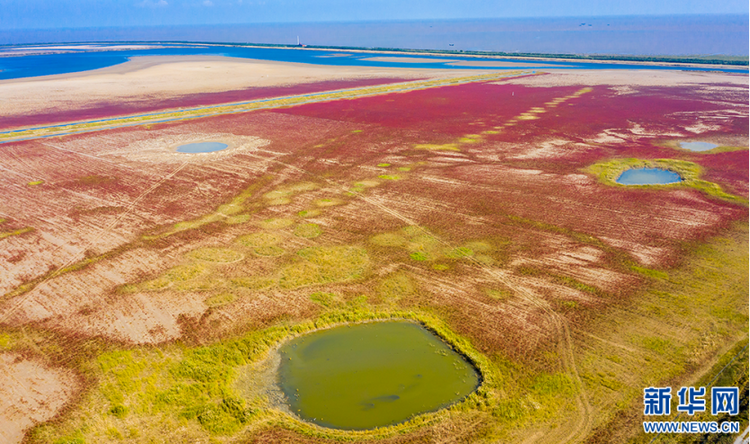 时至深秋,霜寒露重。在世界自然遗产地江苏盐城东台条子泥湿地,经过秋霜洗礼,成片的红蒿子在“滩纸”上涂抹泼撒,似天边飘落的红霞,映衬着蓝天碧水,与大批迁徙的候鸟、成群奔跑的麋鹿“同框共景”,勾勒出一幅东方湿地生态美图。(新华网 作者 李南丹 蒋伟 陆军 刘进涛)
