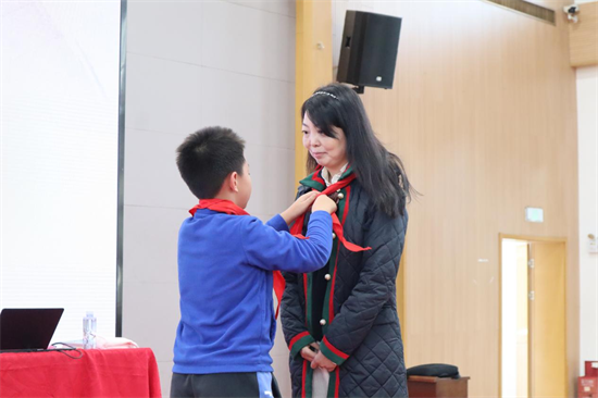 活动伊始,致远小学的少先队代表为刷刷老师系上红领巾。孩子们热情高涨,纷纷举起自己为刷刷老师制作的欢迎牌,热烈欢迎刷刷老师的到来。