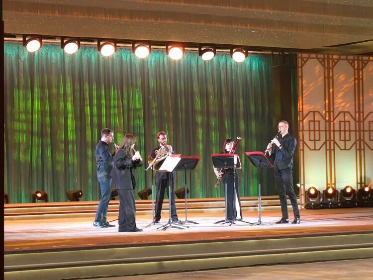 Alex(右三)参与春节团拜会木管五重奏演出