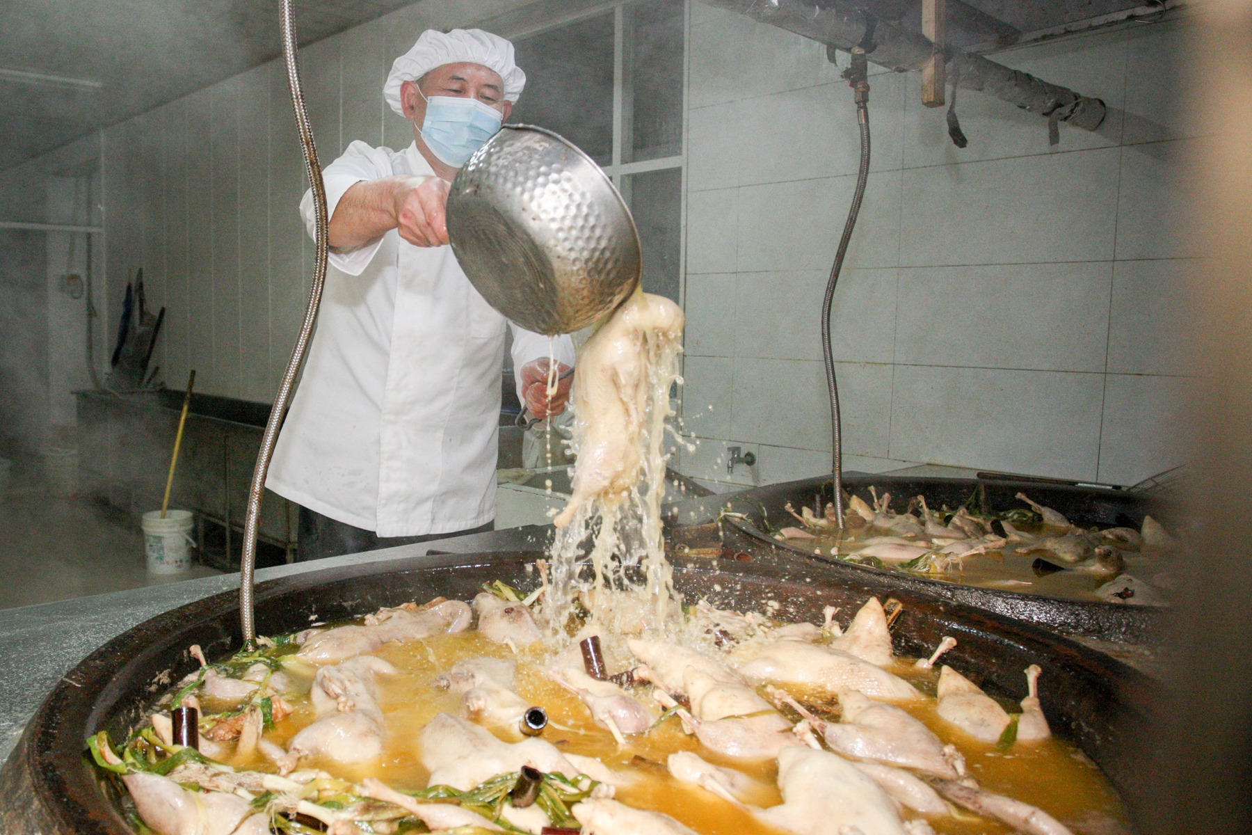 12月28日,南京江北新区长芦板鸭生产现场一片繁忙,获省级非遗认证的南京长芦板鸭生产进入“黄金时段”。据悉,南京长芦板鸭在制作过程中,经过宰杀、腌制、老卤浸卤、晾挂、煮制……历经十八道步骤和特有的传统制作工艺。确保了板鸭鲜香、酥嫩的口感。成为当地饮食文化的一张靓丽名片,让本土非物质文化遗产焕发新的活力。(南京日报/紫金山新闻 记者 董家训)