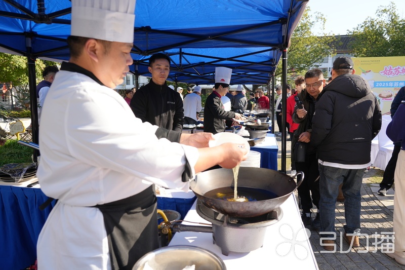 今天(11月19日),在昆山市锦溪镇计家墩理想村村口广场上,八口灶台同时飘出诱人香气,“姑苏城外鱼米乡”2025年苏州乡村美食寻鲜活动拉开帷幕。煎、炒、煮、蒸、炸……锅铲翻飞间,鱼肉遇热卷曲、蔬菜浸润油脂,一道道凝聚水乡智慧的主题菜肴在厨师手中焕发新生,来自苏州各地的乡村厨师们汇聚于此,以舌尖为笔,描绘出一幅生动的江南鱼米之乡烟火画卷。