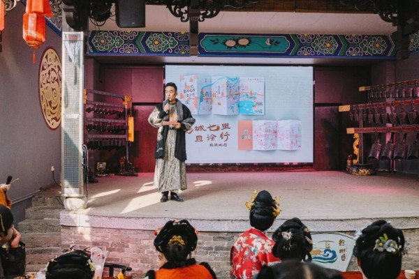 舞台上,主持人声线清扬,拉开活动帷幕。背景乐声中,发布官依次登台:《彭城七里·且徐行旅游地图》及潮游七里七彩线路渐次铺展,七色对应七条主题动线,串起徐州文脉、风物、演艺与美食。