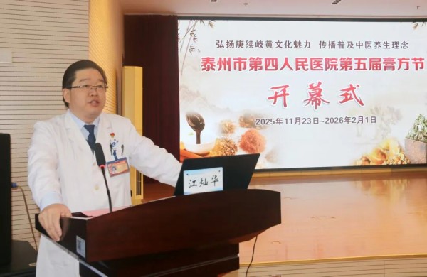 泰州四院党委书记江灿华在致辞中回顾了膏方节的发展历程。他指出,膏方节已成为医院服务大众健康、传播中医药文化的重要品牌。本届膏方节特邀多位省内知名中医专家亲临坐诊,秉持严谨专业的态度,为市民提供细致的中医辨证和健康咨询,量身定制个性化膏方。医院始终坚持“名医+好药”原则,严把药材质量与熬制工艺,确保市民享受到高品质、有实效的膏方服务,满足“治病养身”与“滋补养生”的需求。同时,希望以此次膏方节为契机,打造一个互动体验中医药文化的平台,以实际行动助力“健康海陵”建设。