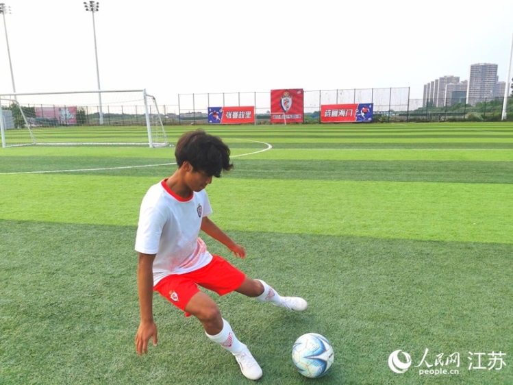 运球、铲球、停球……黄昏时分,江苏南通海门区珂缔缘足球俱乐部的绿茵场上,14岁的“国少队”小将王鑫鹏一脚凌空抽射,足球在空中划出一道弧线,直挂球门。经过日复一日地加练,王鑫鹏等逐梦少年的球技日臻成熟。