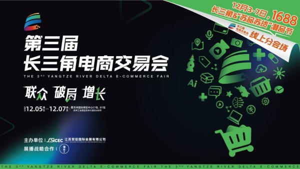 12月5日至12月7日,第三届长三角电商交易会将在苏州国际博览中心举办。作为区域电商经济的重要展示平台与产业协同枢纽,本届交易会以“联众 破局 增长”为核心主题,通过线上线下深度融合的创新模式,打造集展示展销、信息交流、融合发展、共创共赢于一体的专业电商盛会,助力长三角数字经济高质量发展。