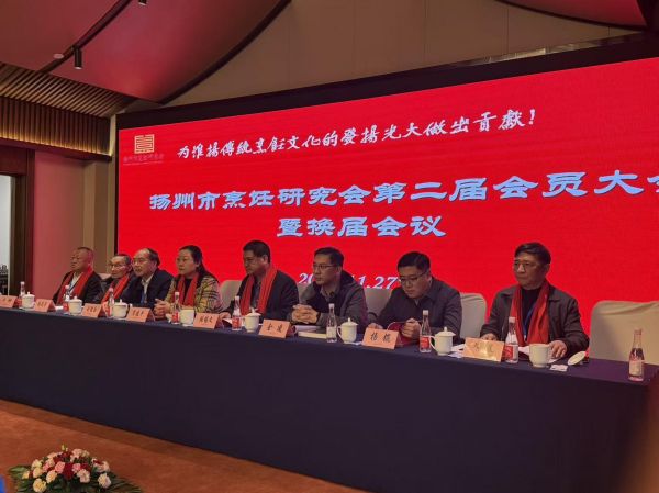市社科联相关领导代表在致辞中肯定了研究会在传承饮食文化、服务产业发展中的重要作用,希望新一届理事会立足扬州文化底蕴,在非遗活态传承、乡村振兴美食赋能、国际文化交流等领域持续发力,让“扬州味道”香飘海内外。