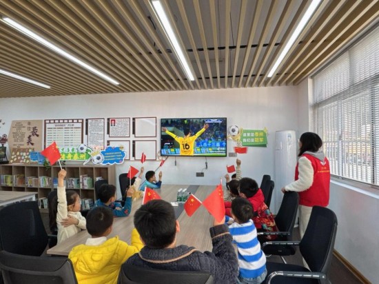 实践站内,青少年们早早围坐,目光聚焦于赛前预热画面的大屏幕。随着3分钟夺冠集锦的开启,泰州队球员高位逼抢的凌厉攻势、行云流水的团队配合,以及门将戴曜城扑出制胜点球的“封神一瞬”,瞬间引爆全场欢呼。孩子们挥舞旗帜模仿射门动作,为每一个精彩瞬间呐喊助威,室内此起彼伏的喝彩声与大屏上高亢激昂的解说声同频共振,奏响了一首热血与梦想的交响曲。