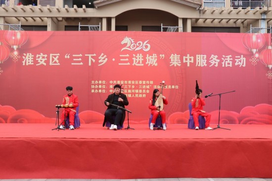 文化惠民,好戏连台聚民心。活动中,淮安市淮剧二团的演员们“送戏下乡”,带来了形式多样的精彩节目,既有富有民族特色的乐器演奏,也有传递文明新风的小品,更有彰显地方文化底蕴的淮剧表演。一个个精品节目轮番上演,将民生故事、政策理念融入艺术演绎,以寓教于乐的方式让观众在欣赏演出的同时,感受身边发展的新变化、新风尚,现场欢笑声与喝彩声交织,节日氛围愈发浓厚。