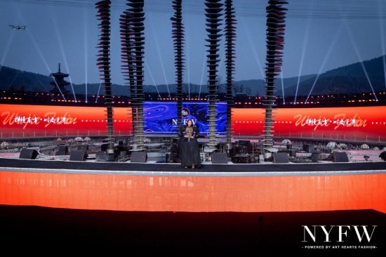 本次活动落户拈花湾微笑广场,开创国际顶级时装周与中国禅意小镇深度融合的先河。夜幕之下,千架无人机光影秀与超模走秀同频呈现,自然山水、唐风建筑与国际时尚同台对话,构建沉浸式、开放式的时尚发布场景。