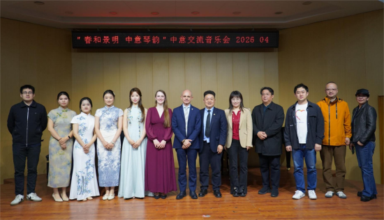随后,“春和景明·中意琴韵”中意交流音乐会在音乐学院上演。双方师生联袂呈现了一台兼具民族特色与学术深度的多元曲目。上半场以中国作品为主,包括《江南丝竹〈弹词韵〉》、古筝独奏《醉京澜》、琵琶独奏《新翻羽调绿腰》以及钢琴独奏《蝶恋花》等,充分展现了中国传统音乐的独特韵味。