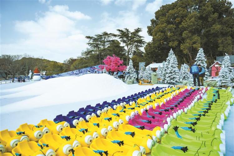 1月28日,梅园景区园艺工人正在加紧打造冰雪梦幻奇缘雪世界。梅园景区占地6600平方米的撒欢雪乐园即将开放,景点集冰雪游玩、打卡、亲子互动于一体,四大主题区域、数十种趣味项目,让市民不出无锡就能沉浸式解锁冰雪童话。(无锡日报 作者 宗晓东)