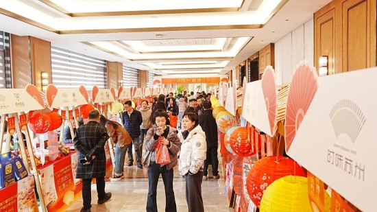 活动现场还设置了“时味苏州”年货采购展示展销市集,设立展销、品鉴、互动、洽谈等功能区域。苏州大米、碧螺春茶、苏太猪肉、水八仙等时令特色农产品集中亮相,吸引众多嘉宾驻足品鉴、洽谈合作。市集通过线上直播、互动体验等方式,进一步拉近了消费者与苏州优质农产品的距离。