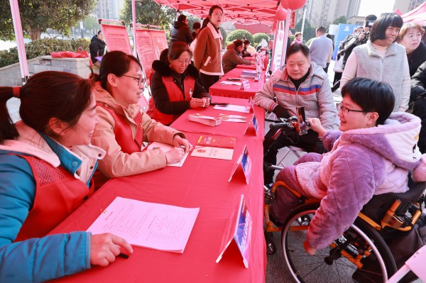 2月4日下午,南京市栖霞区2026年春风行动暨就业援助季活动招聘会在马群街道花岗保障房片区甬利广场举办。此次招聘会由南京市劳动就业服务管理中心、栖霞区人社局、栖霞区残联等联合举办,以“春风送岗促就业 真情相助暖民心”为主题,为求职者与用工企业搭建精准对接平台,吸引了众多残疾人求职者到场。