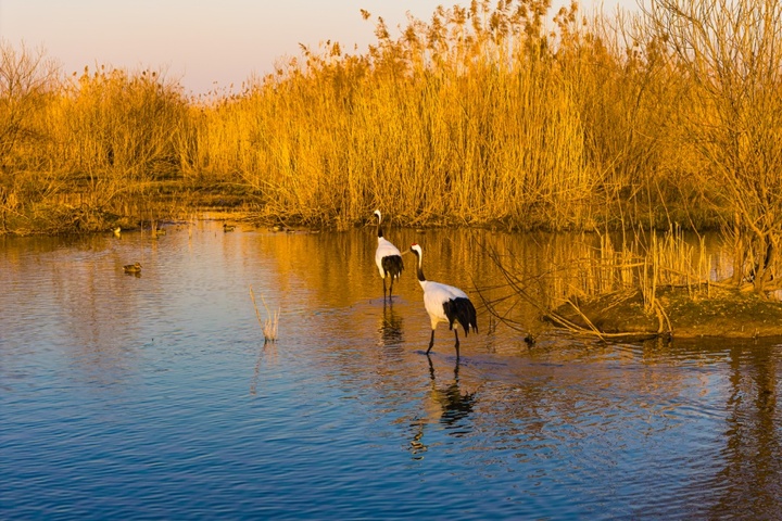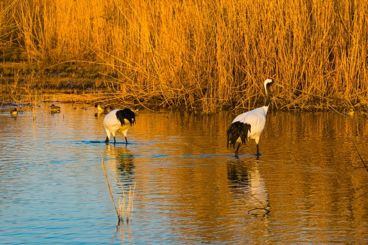 丹顶鹤(学名Grus japonensis),俗称“仙鹤”,是鹤形目鹤科鹤属的大型涉禽,也是东亚特有的珍稀鸟类,被列为国家一级重点保护野生动物,同时入选《濒危野生动植物种国际贸易公约》附录Ⅰ,全球野生种群数量仅约3822只,生存状态为易危。作为典型的湿地指示物种,丹顶鹤对栖息环境有着极高要求,主要栖息于开阔平原、沼泽、湖泊、海边滩涂、芦苇沼泽及河岸湿地等区域,这类生境不仅能为其提供充足的鱼虾、水生昆虫、软体动物等食物,还能满足其筑巢、休憩的需求,是湿地生态系统健康的“晴雨表”。