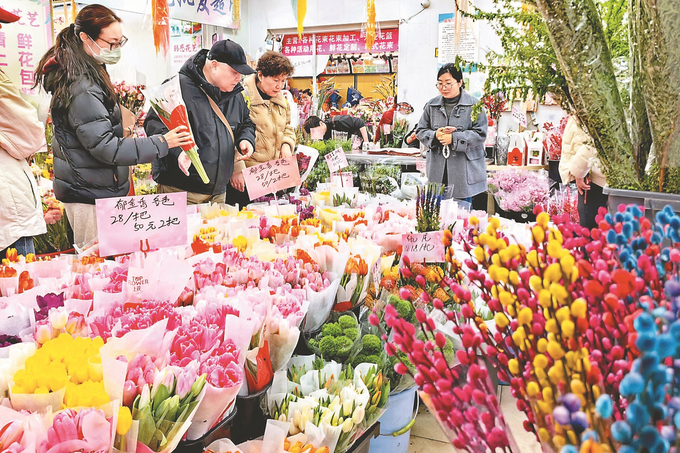 二月十三日,临近春节,南京汉中门花卉市场年宵花迎来销售高峰。据悉,2026年年宵花“顶流”依旧是蝴蝶兰,玫瑰、郁金香、蜡梅、金橘及“五代同堂果”等也很走俏。(新华日报 记者 刘莉 摄)