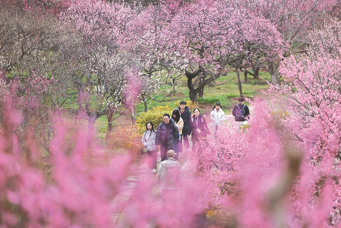 2月25日,素有“天下第一梅山”美誉的南京明孝陵梅花山迎来盛花期。漫山梅花姹紫嫣红,竞相绽放,吸引众多市民与游客纷至沓来,赏花拍照。 (新华日报 记者 蒋文超 摄)