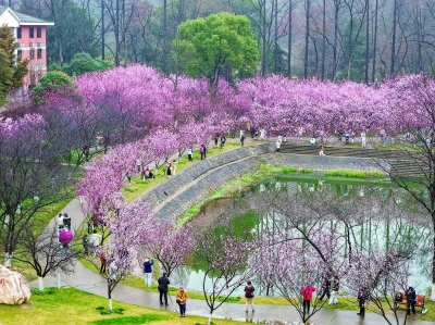原标题:暖冬催“樱”讯 一园春色新