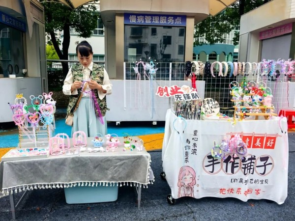 这个市集是社区专门为宝妈打造的实战平台,不仅设置了“直播体验角”,还开辟了手作创业摊位,让宝妈们把课堂上学到的技能直接用到实践中。直播过程中,导师在现场巡回指导,帮宝妈们优化话术、调整互动节奏;摊位前,宝妈们热情地向顾客介绍产品,不少手工工艺品、烘焙点心当场售出。