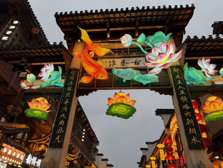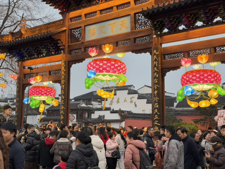 在景区周边,公交接驳专线忙碌穿梭。来自山东的游客王女士一家将车停在光环花园城停车场,换乘接驳公交前往景区。“停外围坐接驳车反而更方便,不堵车。”王女士惊喜地发现,这趟公交正是“四大主题车辆”之一,车厢内装饰着秦淮灯彩元素,“还没进夫子庙,就已经感受到浓浓的节日气氛了。”