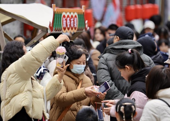 街区另一侧,南京体彩携手元祖食品打造的“好运接力 马上启程”元宵主题活动同样人气高涨。五大趣味闯关打卡点吸引市民踊跃参与,影视角色凌妙妙与慕子期、贾宝玉与林黛玉等惊喜现身与游客互动,为传统佳节注入青春活力。新春市集、年货大集、六潮雅集三大市集亮相,琳琅年货、非遗文创与秦淮传统小吃令人流连。