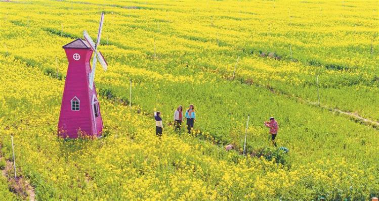 滨湖区胡埭富安的油菜花田目前已开放了五成,成为市民前去观赏油菜花田的好去处。图为3月9日,市民在胡埭七彩花田尽兴游玩。(无锡日报 作者 宗晓东 摄)