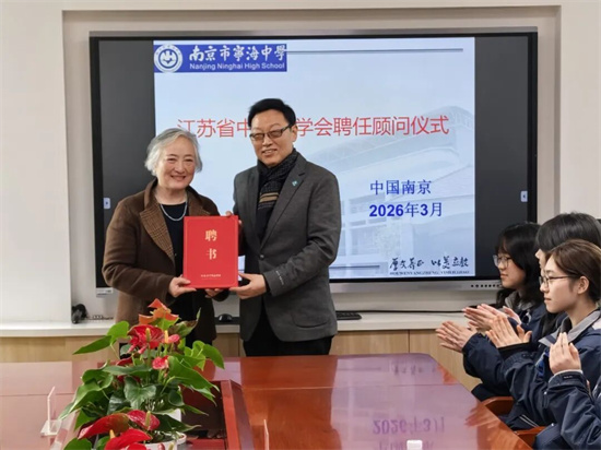 3月23日,江苏省中国画学会顾问聘任仪式在江苏省中国画学会宁海中学美育平台举行。江苏省中国画学会创会会长高云为纽约华美协进社原副社长、中国美术馆原馆长海蔚蓝女士颁发学会顾问聘书。中国画学会副秘书长、江苏省中国画学会会长翟优,南京市宁海中学党委书记徒香福、校长刘宏业、副校长余萍、艺术教育处主任朱云等以及师生代表齐聚一堂,共同见证这一学术活动。