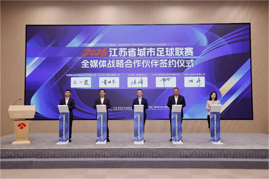 4月2日,2026江苏省城市足球联赛官方主播机构授牌仪式暨全媒体合作伙伴签约仪式在江苏省广播电视总台新闻发布厅举行。