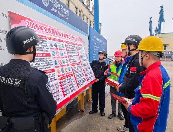 在第十一个全民国家安全教育日来临之际,为深入贯彻总体国家安全观,筑牢国门安全法治防线,4月13日,盐城出入境边防检查站组织民警走进盐城港粮食码头,开展“法润国门 国家安全”主题普法宣传活动,将普法“流动课堂”搬到口岸一线,切实提升口岸群众国家安全意识。